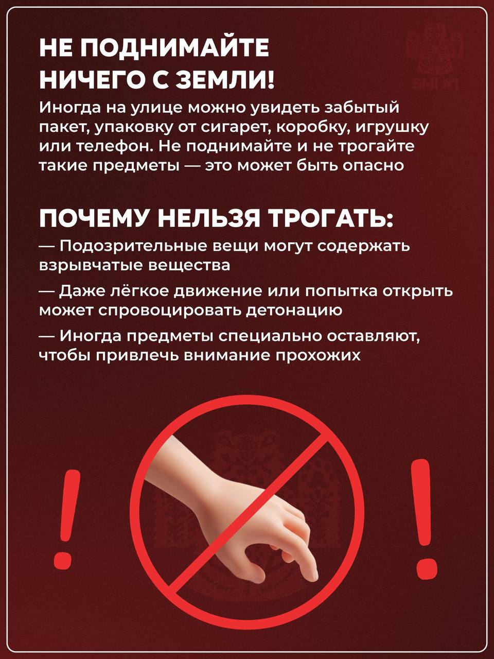 Служба безопасности АБМК информирует, что после ужасного происшествия с мальчиком из Красногорска, в руках которого взорвалась «купюра», информируем, как вести себя, если вы увидели на земле подозрительный(а может и не очень) предмет.